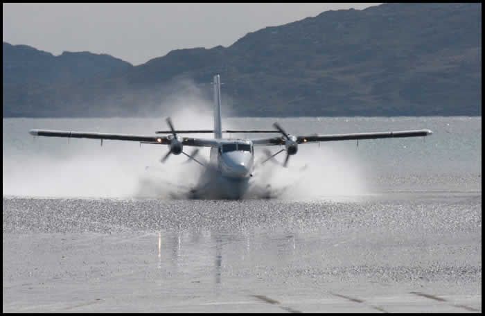 تهبط الطائرات في مطار بارا في إسكتلندا على شاطىء رملي، لذلك فيجب أن تنظم هبوطها وفقًا لحركة المد، خوفًا من اختفاء المدرج تمامًا.