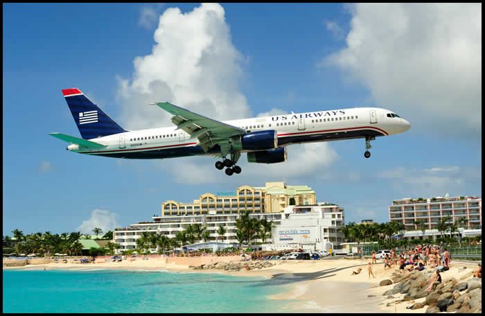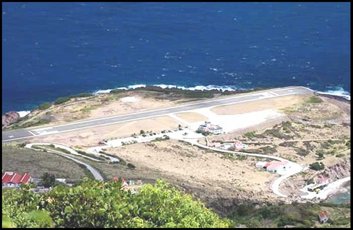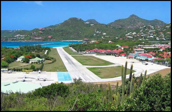 يحتوي مطار جزيرة”سان بارتليمي” في البحر الكاريبي، على مدرج قصير للغاية يبلغ طوله 2,100 قدم، ويقع على مقربة من شاطىء عام ممتلىء بالسائحين.