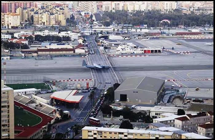 يقطع مدرج مطار “جبل طارق” شارع “وينستون تشرشل”، وهو أحد أكثر الشوارع ازدحامًا في المدينة، ويجب أن يتم غلقه لحظة هبوط الطائرات.