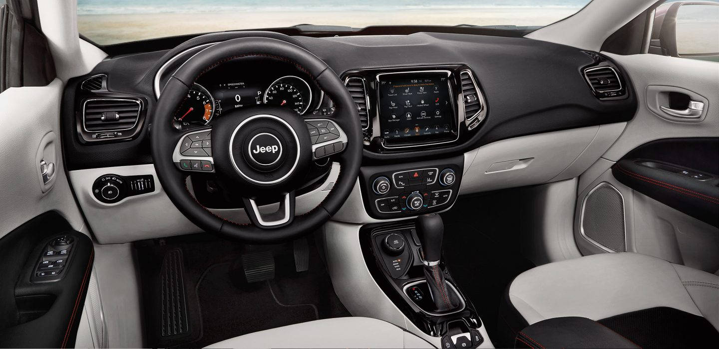 إنّ جيب كومباس 2018 وفيّ للمفهوم الأصلي: سيارة "مُتداخلة الأوجه" (كروس أوفير) صغيرة مع هيكل متين وتصميم مُستوحى من شكل "غراند شيروكي". ويُمكن طلب فئة الدفع الرباعي مع علبة التروس الأوتوماتيكيّة الإضافية من تسع نسب أماميّة، علمًا أنّ نظام "التجاوب مع الطريق" هو أوتوماتيكي العمل. ويستفيد طراز "ترايلهوك" من أفضل التجهيزات المُتوفّرة.