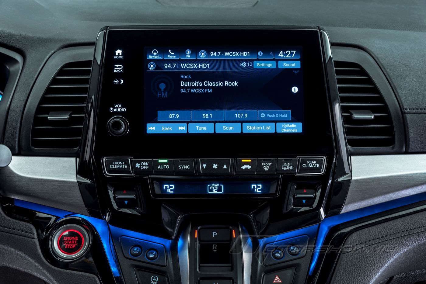 * CabinControl - using a downloadable app, users can use a smart phone to control the rear entertainment system, rear cabin heat and air conditioning, and send destinations to the embedded Honda navigation system.