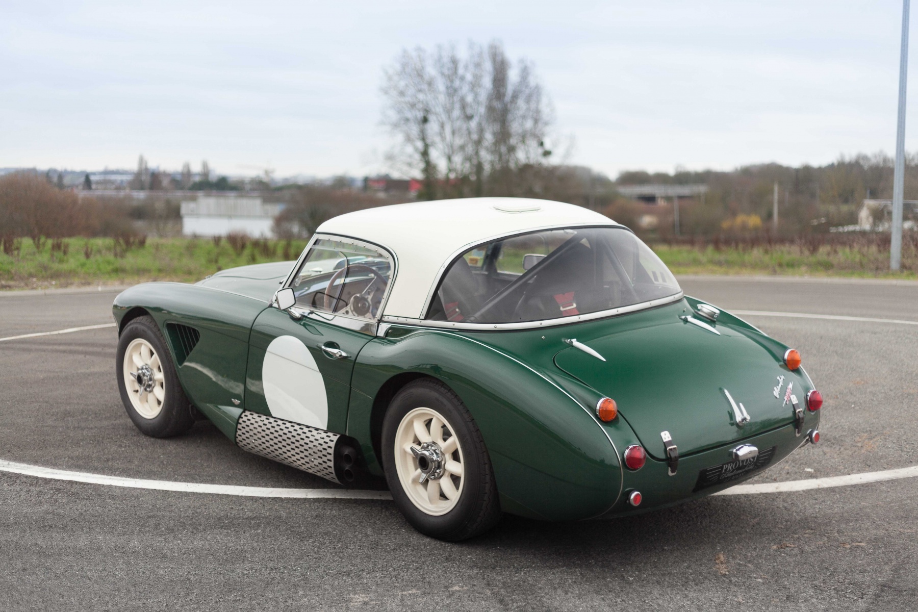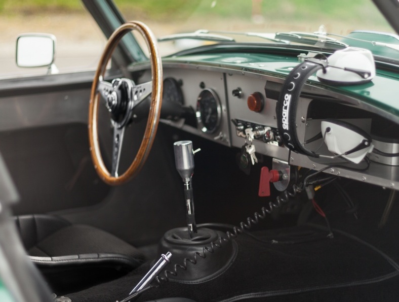 It comes with 3 carburators Weber, 4 speeds gearbox with overdrive, minilite wheels with avon tires, bilstein shock absorbers, bucket seat denis welch, and an exhaust line on the side and fixed hardtop.