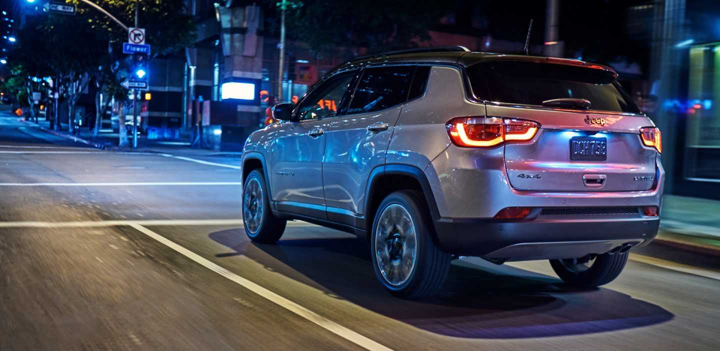 The aerodynamic design exudes a confident stance. Clever visual cues like the available black roof and bright chrome molding that wraps dramatically around the rear and sides give the Jeep® Compass an upscale, sophisticated profile.