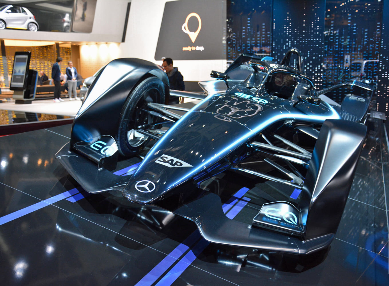 وبرزت EQV Concept التي تنتمي لفئة MPV الكهربائيّة، علمًا إنّ إنتاجها يتمّ تحت إسم EQ الذي يمثّل خط إنتاج مستقلّ ومتطوّر تكنولوجيًا. وبإمكان هذه السيارة الإختباريّة التي تتمتّع بعملانية كبيرة داخل المقصورة، عُبور مسافة تبلغ 400 كيلومتر قبل الإضطرار لإعادة تعبئة البطارية، علمًا إنّها مزوّدة بنظام شحن سريع للغاية.