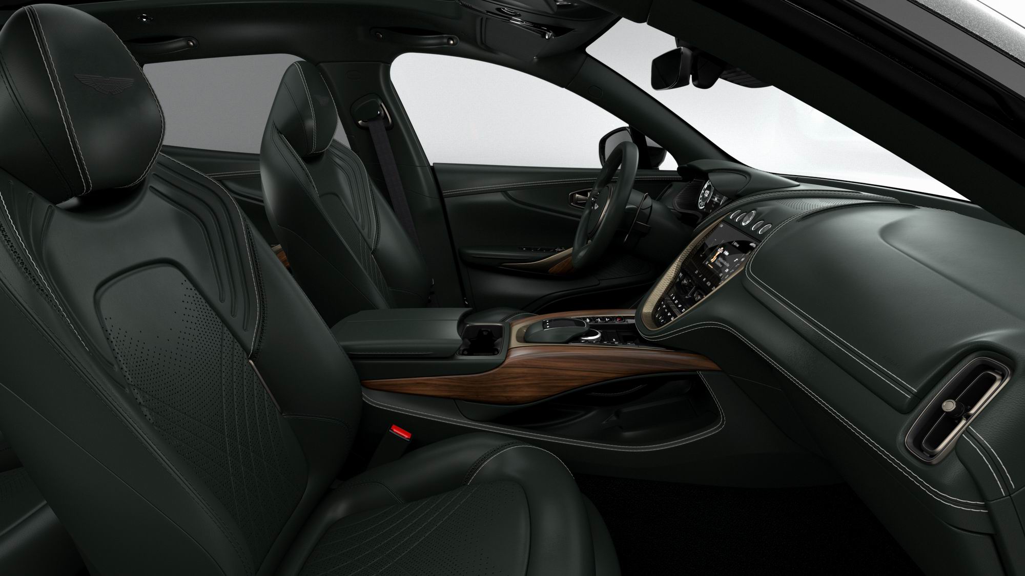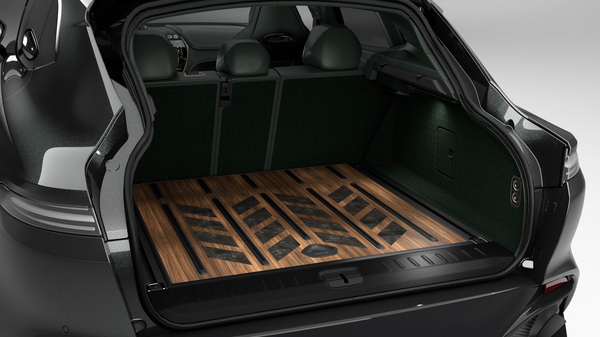 ويجسّد هذا الإصدار الخاص أول ظهور للمسات الحجرية الحقيقية في تصميم العلامة مع تطعيمات رخام بيترا دافوليا الرمادية التي تتماشى مع خشب الجوز المصقول. وتشتمل جلود أستون مارتن التقليدية والمحاكة يدوياً على زخارف باللون الأخضر وعجلة القيادة المصممة بواسطة قسم تخصيص السيارات كيو باي أستون مارتن، لتحاكي جدران غرفة المحاكاة والطلاء العميق متعدد الطبقات ذو اللون المخصص من إبداع القسم والمستوحى من التصميم الخارجي للمبنى مع تشطيبات دقيقة باللون الأخضر. وتشتمل المقصورة الداخلية للسيارة على تشطيبات من خشب الجوز الصلب وجلود بارليمنت ذات اللون الأخضر وتفاصيل برونزية مع تشطيبات الألمنيوم الأسود المؤكسد والأحجار الحقيقية من إبداع قسم كيو باي أستون مارتن.