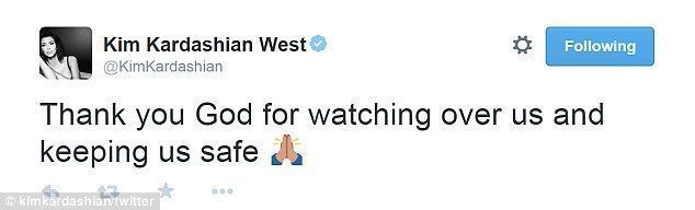 تغريدة كيم كارداشيان بعد الحادث