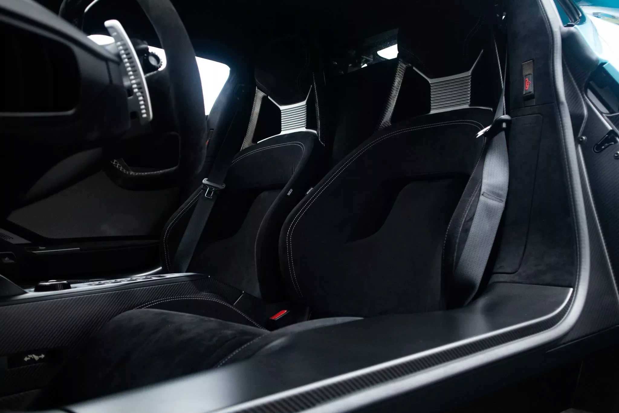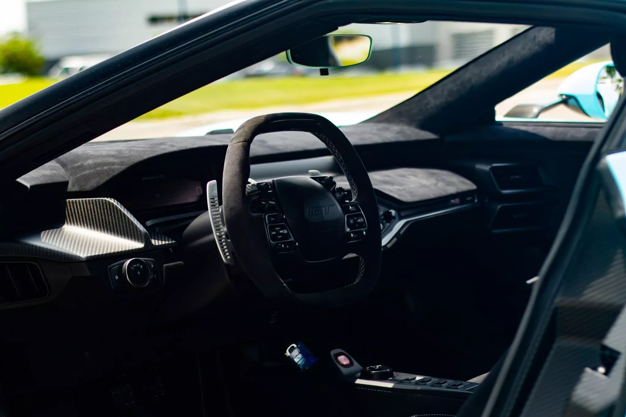 ويوجد داخل كابينة السيارة مقاعد سباركو الثابتة المغلفة بجلد الألكانتارا الأسود مع أغطية من الكربون فايبر قابلة للإمالة يدويًا. وكما هو الحال مع جميع سيارات فورد GT الأخرى، فإن هذه المقاعد ثابتة في مكانها، ويمكن فقط تحريك صندوق الدواسة وعمود القيادة.