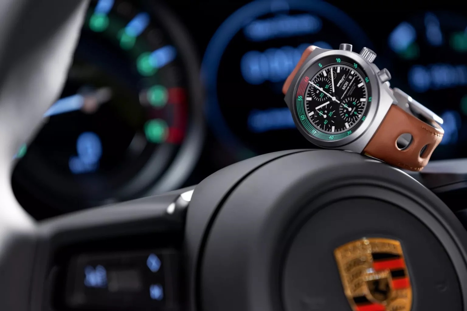الساعة المعروفة رسميًا باسم كرونوغراف 1 – 911 S/T، ستُعرض حصريًا لمالكي سيارات بورش 911 S/T، وتتميز بعلبة خفيفة الوزن مصنوعة من التيتانيوم غير المطلي والمصقول بالرمل. فيما تم طلاء الأرقام و شاشة عرض التاريخ واليوم بطبقة خضراء مضيئة من الفوسفور، بينما يساعد القرص الأسود وحلقة الإطار على محاكاة عدادات بورش 911 S/T الأصلية من عام 1970.