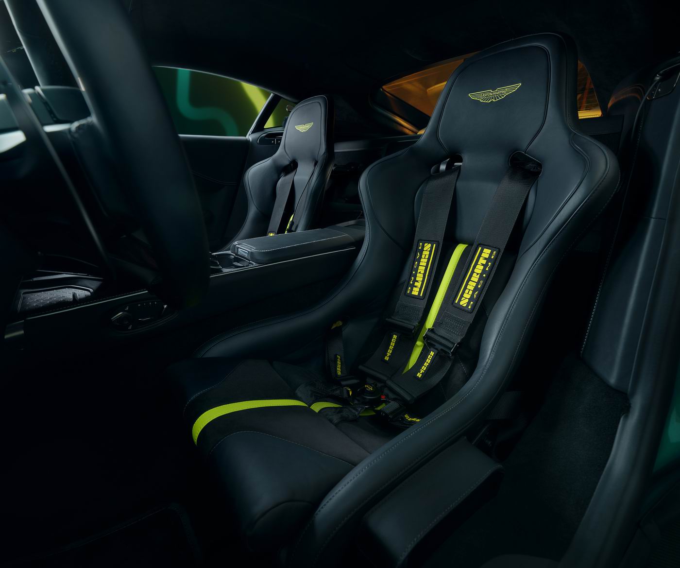 وتحتوي سيارة الأمان فانتاج على عدد كبير من الأنظمة لمساعدة السائق والمرافق على أداء دوريهما بنجاح، حيث تم استبدال المقاعد الأساسية بمقاعد رياضية لضمان ثبات سائق سيارة الأمان، بيرند مايلاندر، ومرافقه في مكانهما أثناء القيادة بسرعة. كما تم تثبيت وحدة تحكم مركزية مخصصة ومزودة بمفاتيح تشغيل أنظمة الاتحاد الدولي للسيارات، إلى جانب شاشات تعرض أوقات اللفة مباشرةً ووضعية المسار لجميع السيارات، وكاميرا للرؤية الخلفية. وانطلاقاً من حرص أستون مارتن على تقديم سيارة أمان عالية الأداء، تتميز السيارة بتصميمها الداخلي مع لمسات بلون لايم إيسنس الفريد، في إشارة إلى ألوان السباق الخاصة بالعلامة التجارية.