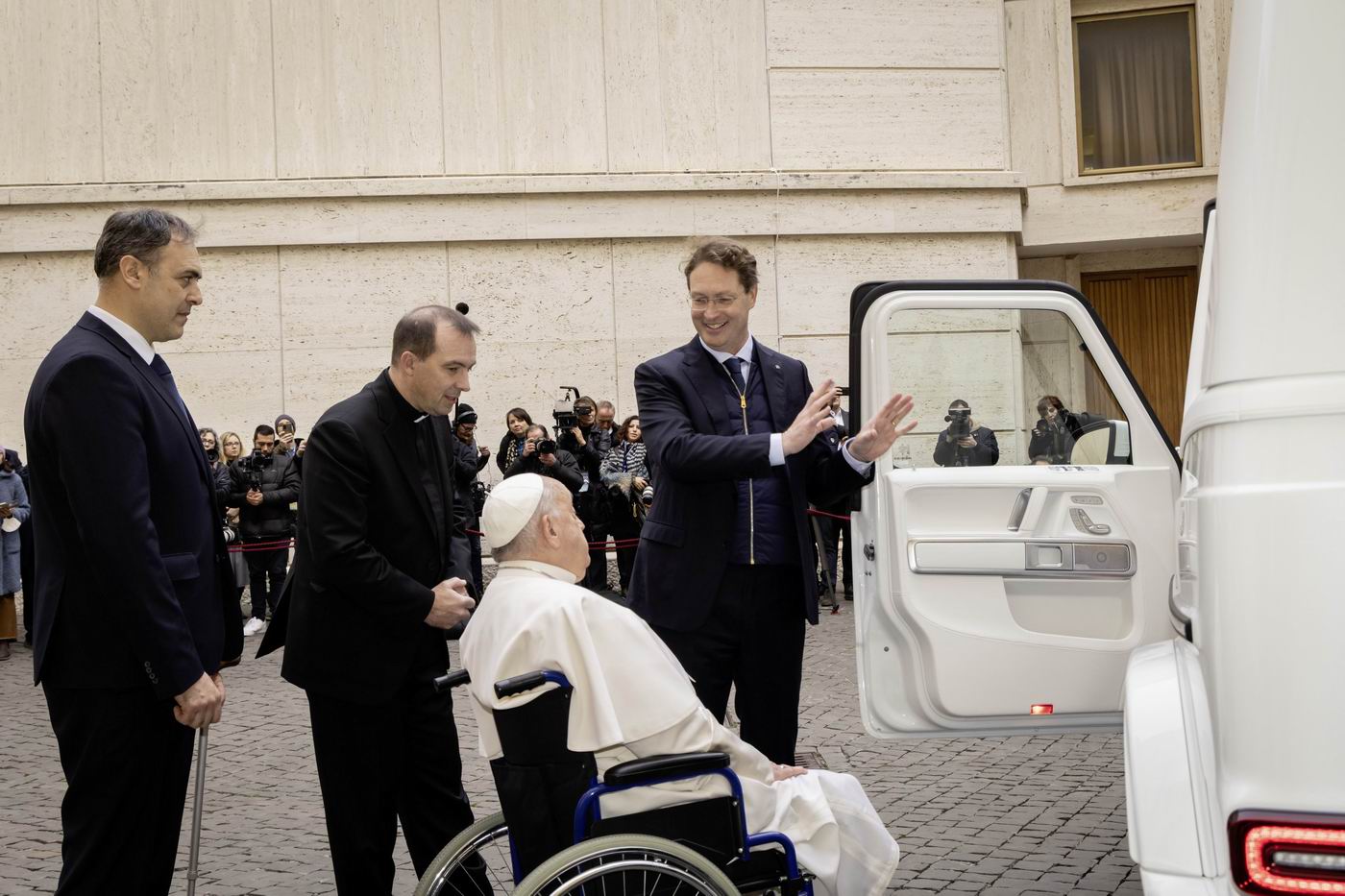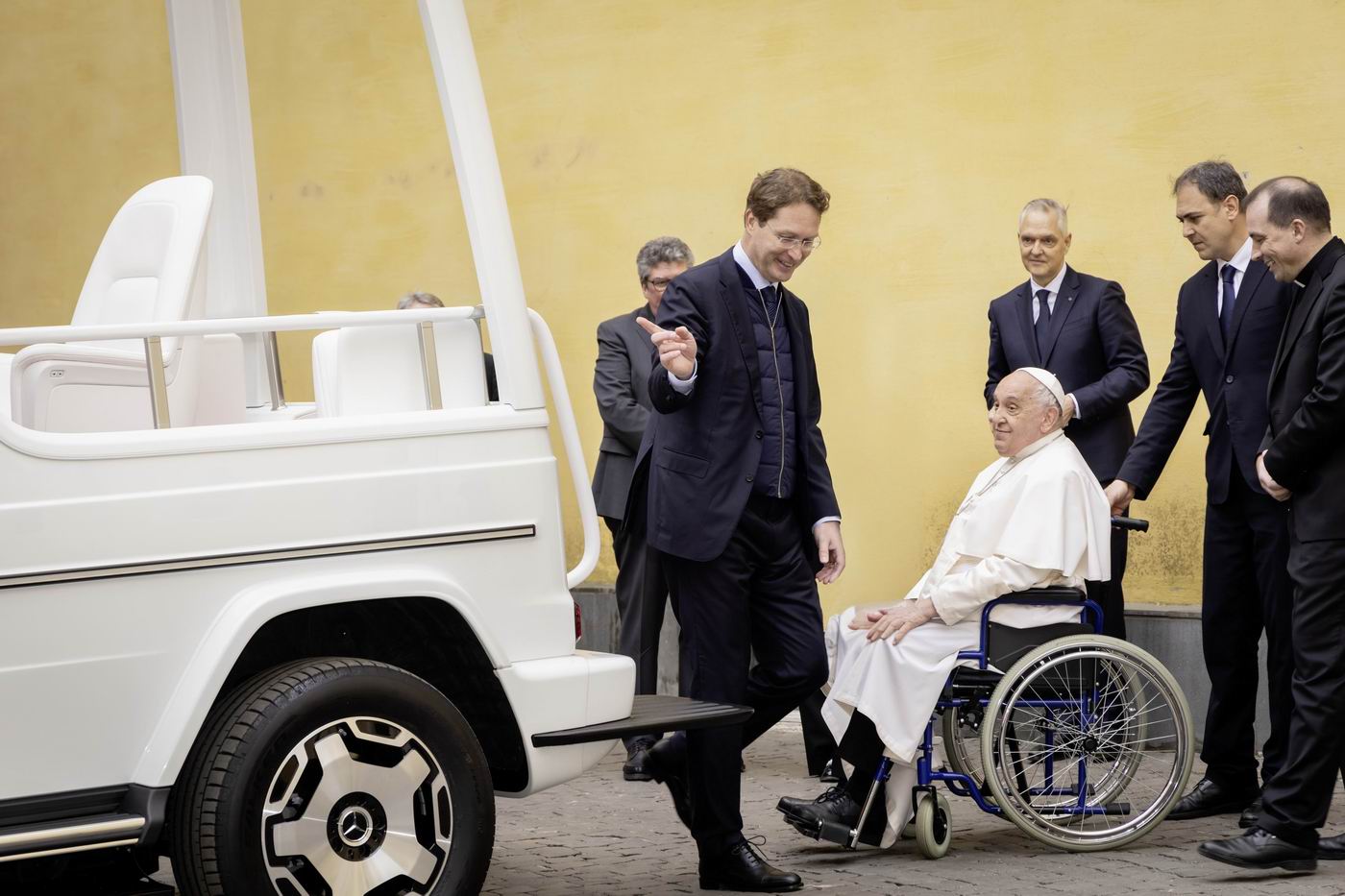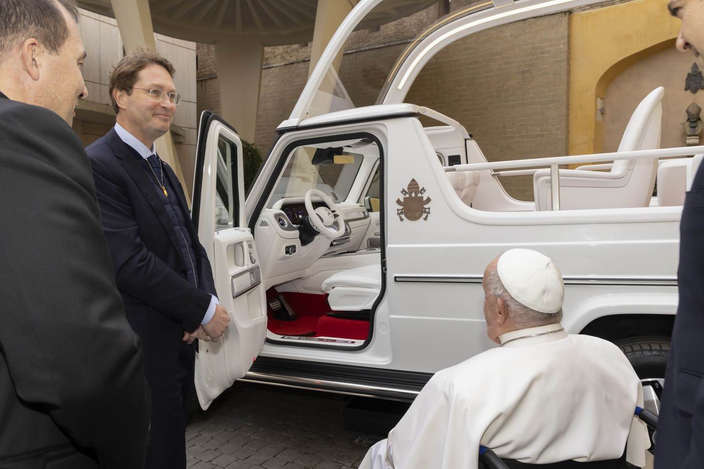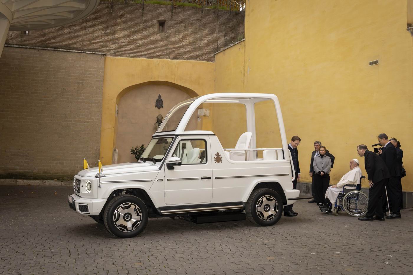 قبل أيام قليلة من احتفاله بعيد ميلاده الـ88، حصل البابا فرنسيس، بابا الفاتيكان، على سيارة كهربائية جديدة صممتها خصيصاً شركة «مرسيدس بنز». وتعد هذه السيارة الأولى من نوعها التي يستخدمها بابا الفاتيكان، حيث تعمل بالطاقة الكهربائية بالكامل ولا تصدر أي انبعاثات كربونية.