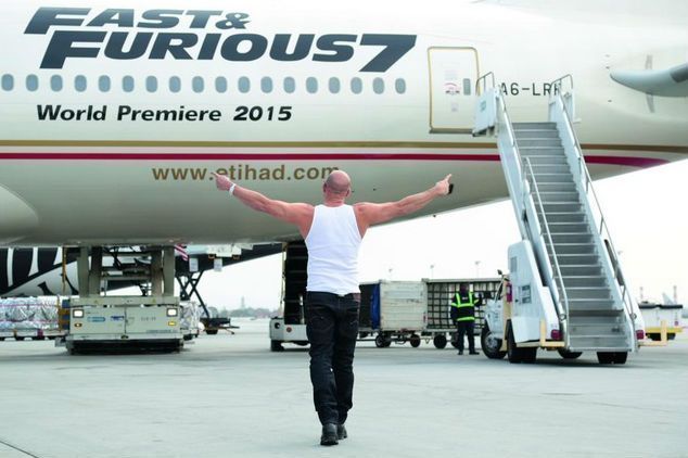 بالصور: فان ديزل على طيران الاتحاد الإماراتية
