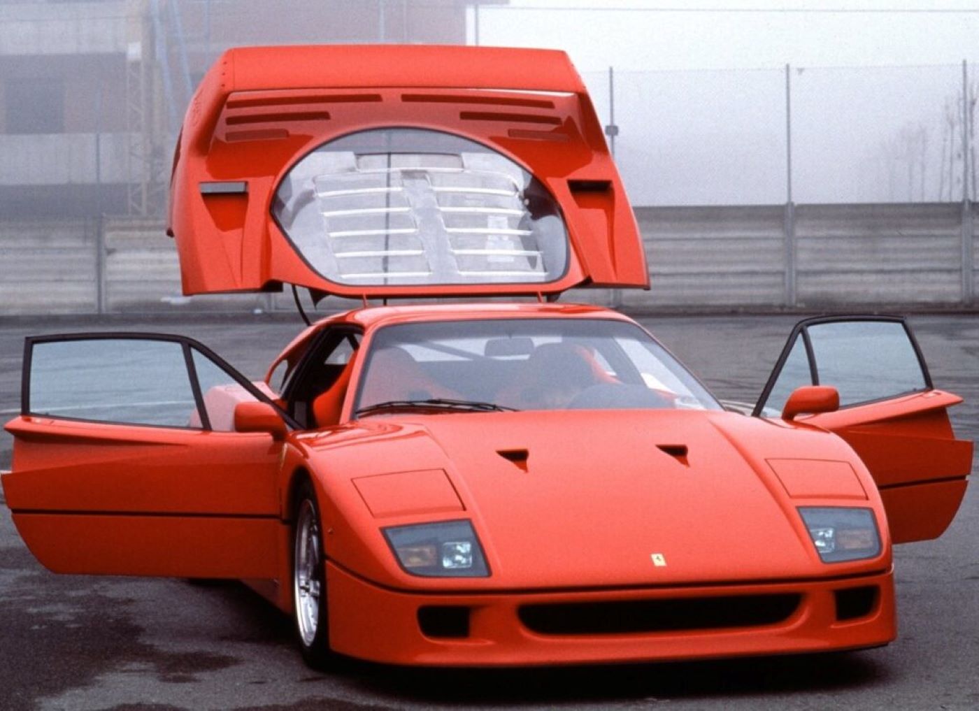 في الثمانينيات، قدمت فيراري F40 كأول سيارة إنتاجية تتجاوز سرعة 320 كم/س، لتصبح رمزًا لأي سيارة خارقة في العالم. صُممت السيارة لتقديم تجربة قيادة نقية ومباشرة، مع محرك V8 مزدوج التيربو يولد نحو 471 حصانًا وعزم دوران 577 نيوتن متر، وهيكل خفيف الوزن يبلغ حوالي 1100 كغ بفضل ألياف الكربون والكيفلار، ما جعلها سريعة جدًا وقريبة من الإحساس بقيادة سيارة سباق على الطرق العامة.