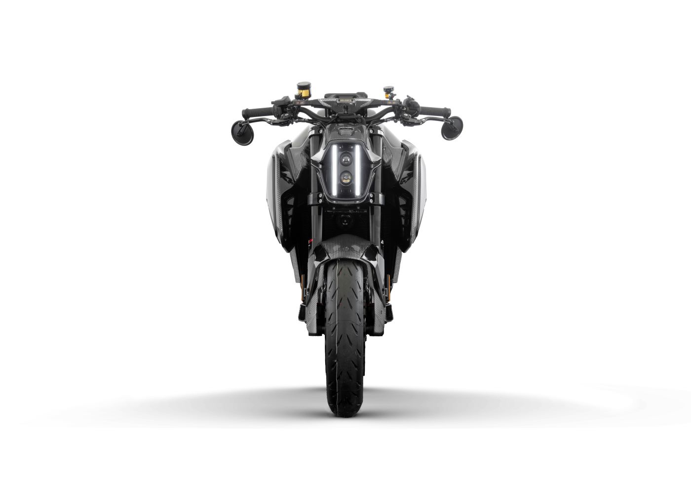 Based on the current KTM 1390 SUPER DUKE R EVO, the BRABUS 1400 R SIGNATURE EDITION embodies raw strength and modern elegance on two wheels. The new WIDESTAR bodywork featuring high-grade exposed-structure carbon components underscores the brand's signature “Black and Bold” design language and complements the special “Midnight Veil” body color.
