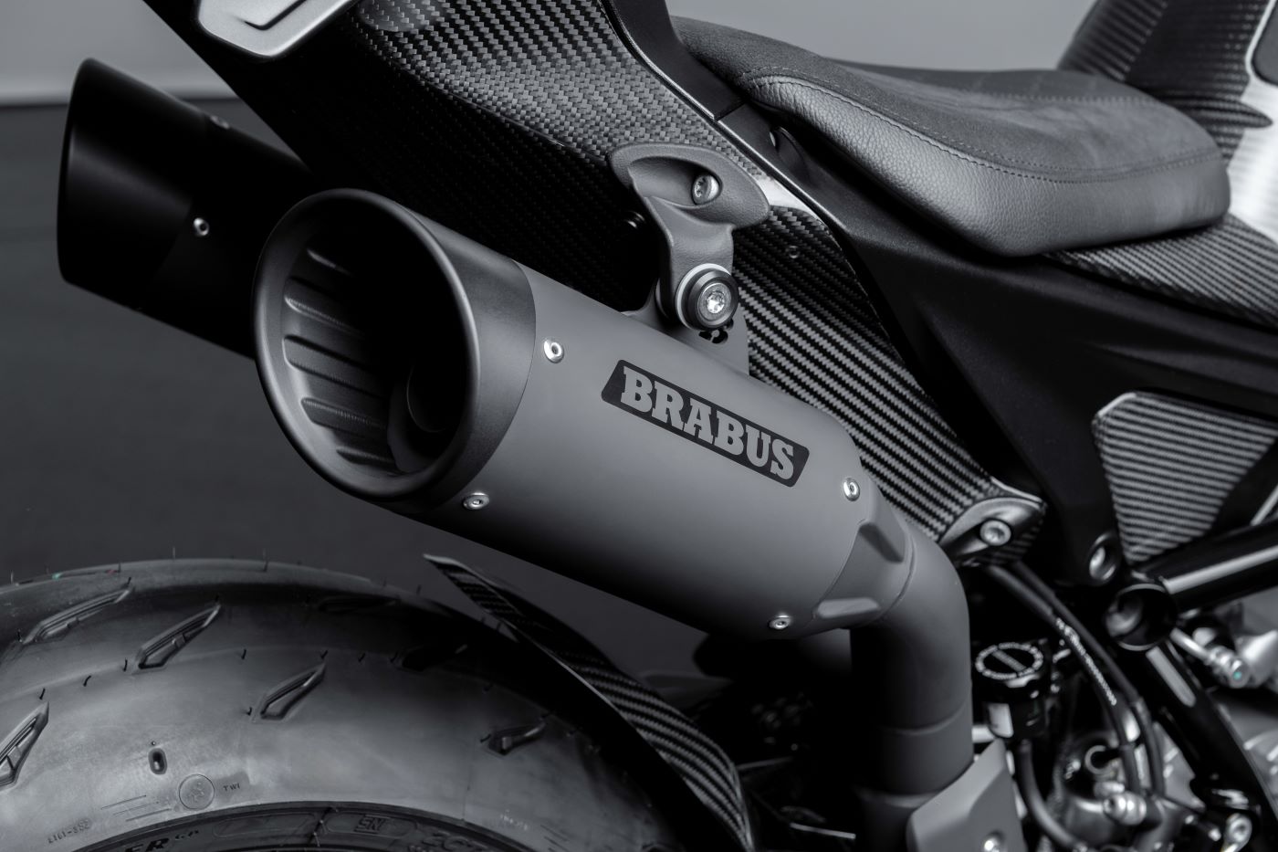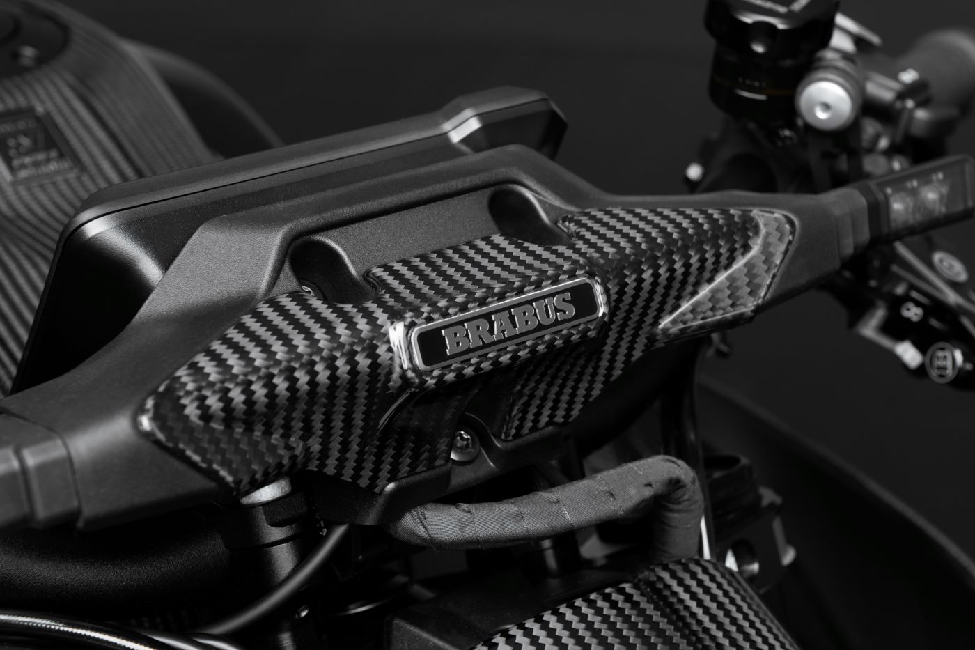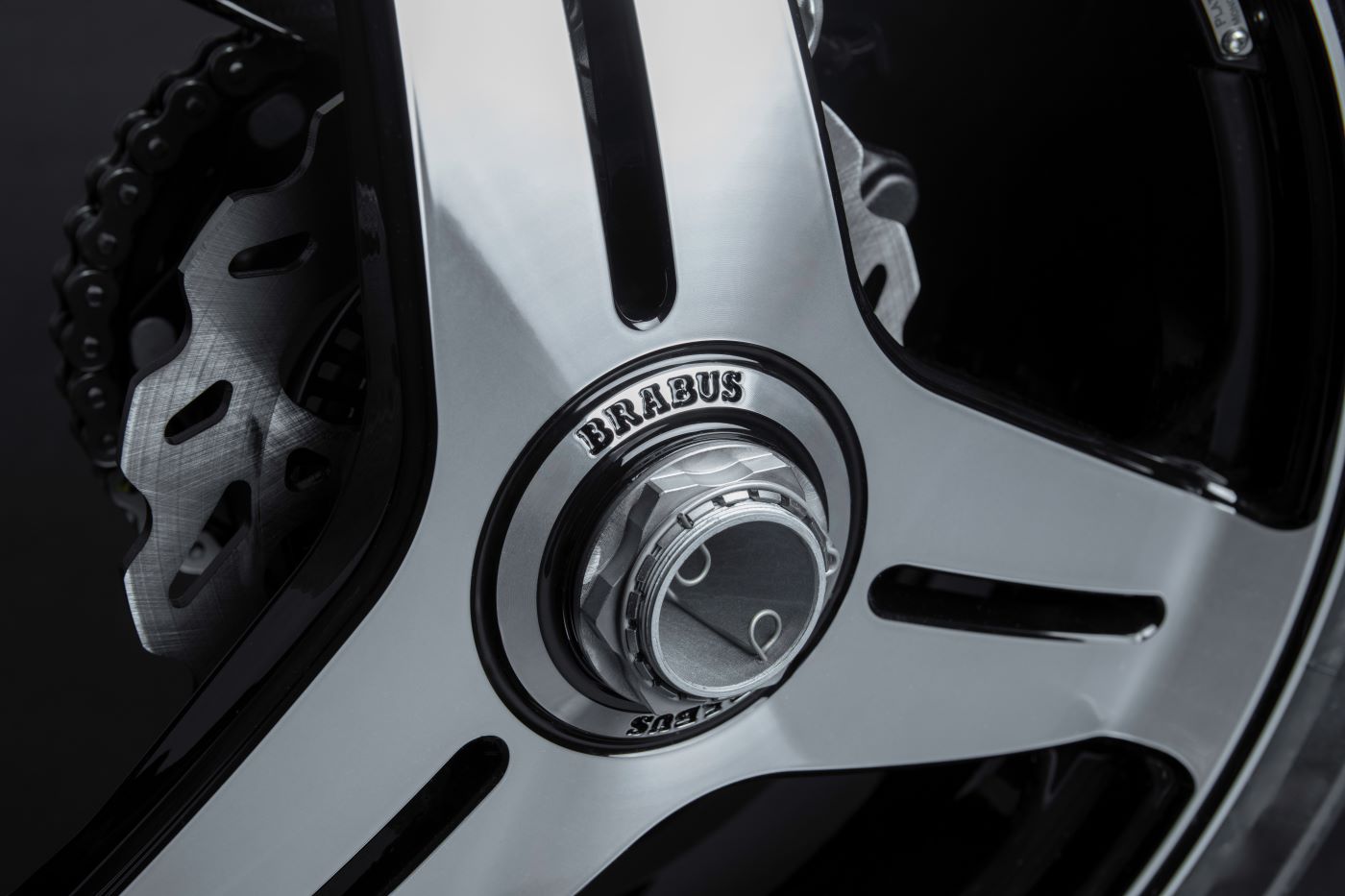 For the tailor-made wheels, the BRABUS engineers opted for the BRABUS Monoblock II EVO “PLATINUM EDITION” design in the dimensions 3.5Jx17 and 6Jx17. An homage to one of the most iconic wheel designs in the company’s longstanding history and manufactured through the use of cutting-edge forging and CNC machining technology. Additional exposed-structure carbon fiber features, such as the rear wheel cover, single swing arm cover and chain guard, complement the look.
