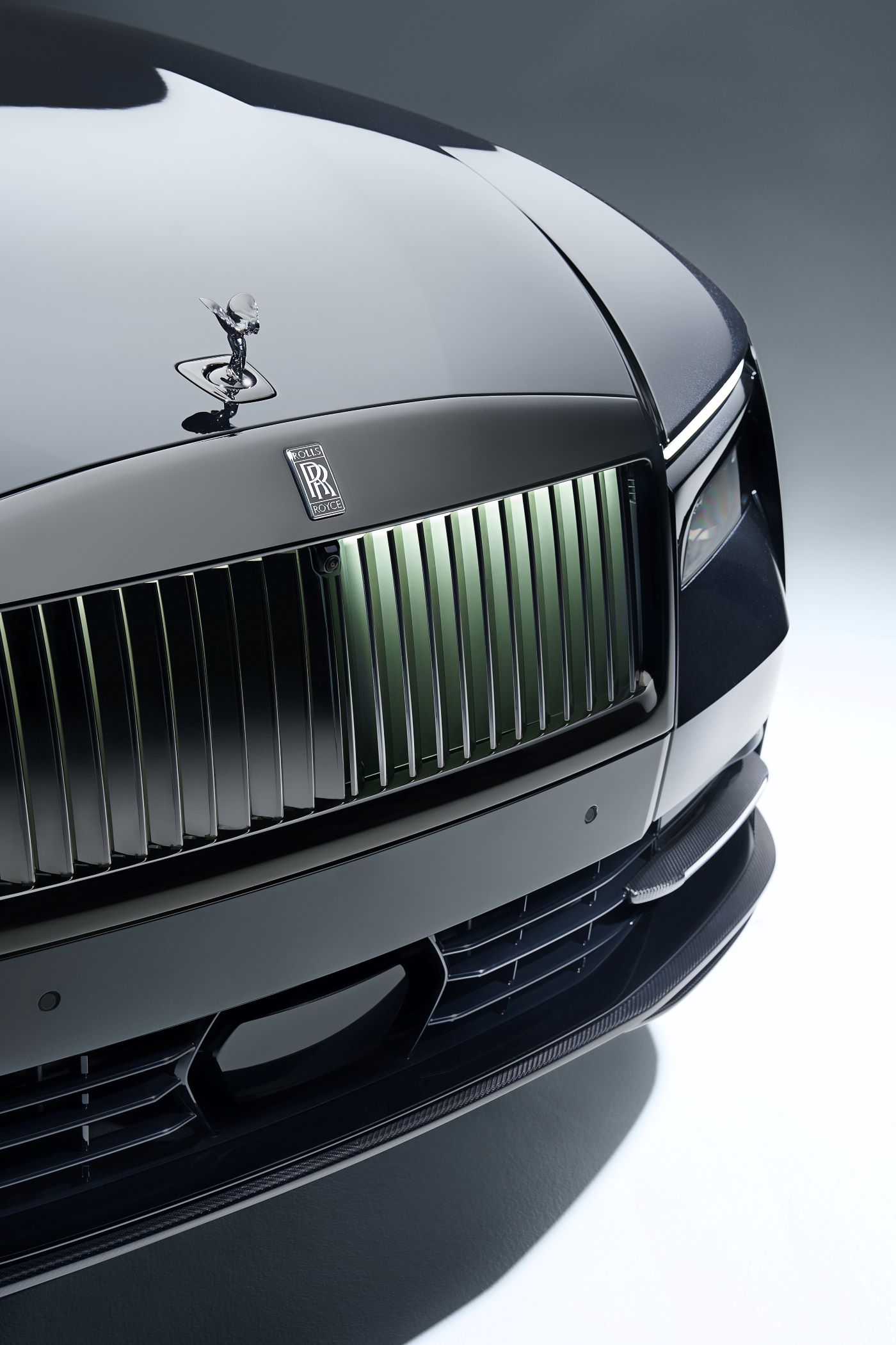 The face of the Black Badge Spectre, whose illuminated radiator grille ensures that the car emerges from anonymity even in the dark, is given an even more striking touch by the SPOFEC front inserts with LED position markers and the SPOFEC front spoiler, which attaches to the production bumper. However, the looks are not the only standout feature of the aerodynamic enhancement component. It also reduces front-axle lift at high speeds.