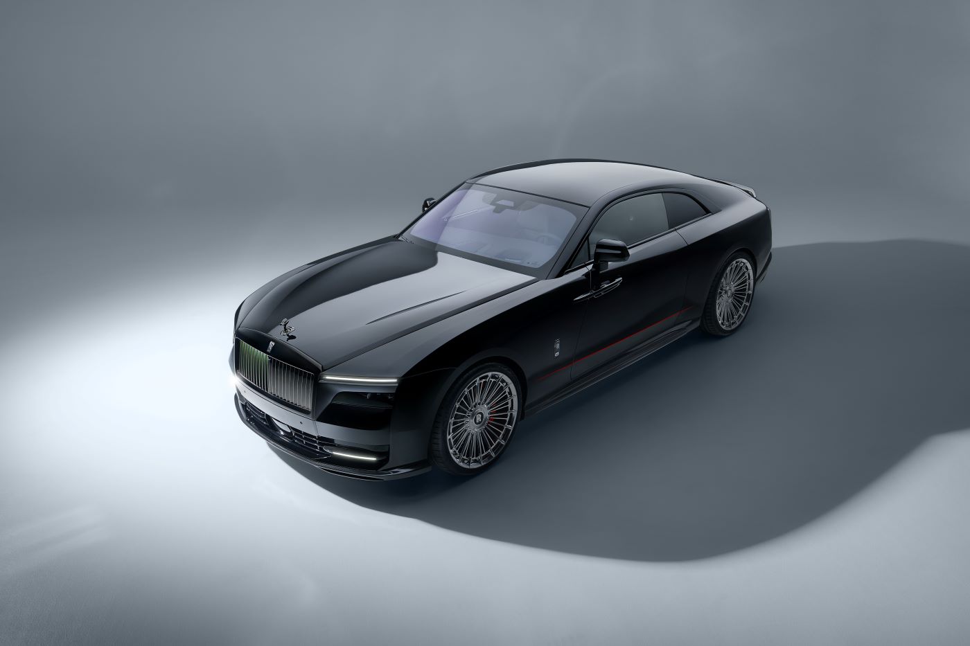 The dynamic overall appearance also includes the SPOFEC suspension kit, which lowers the ride height of the coupe by about 35 millimeters without impairing the legendary ride quality of a Rolls-Royce.