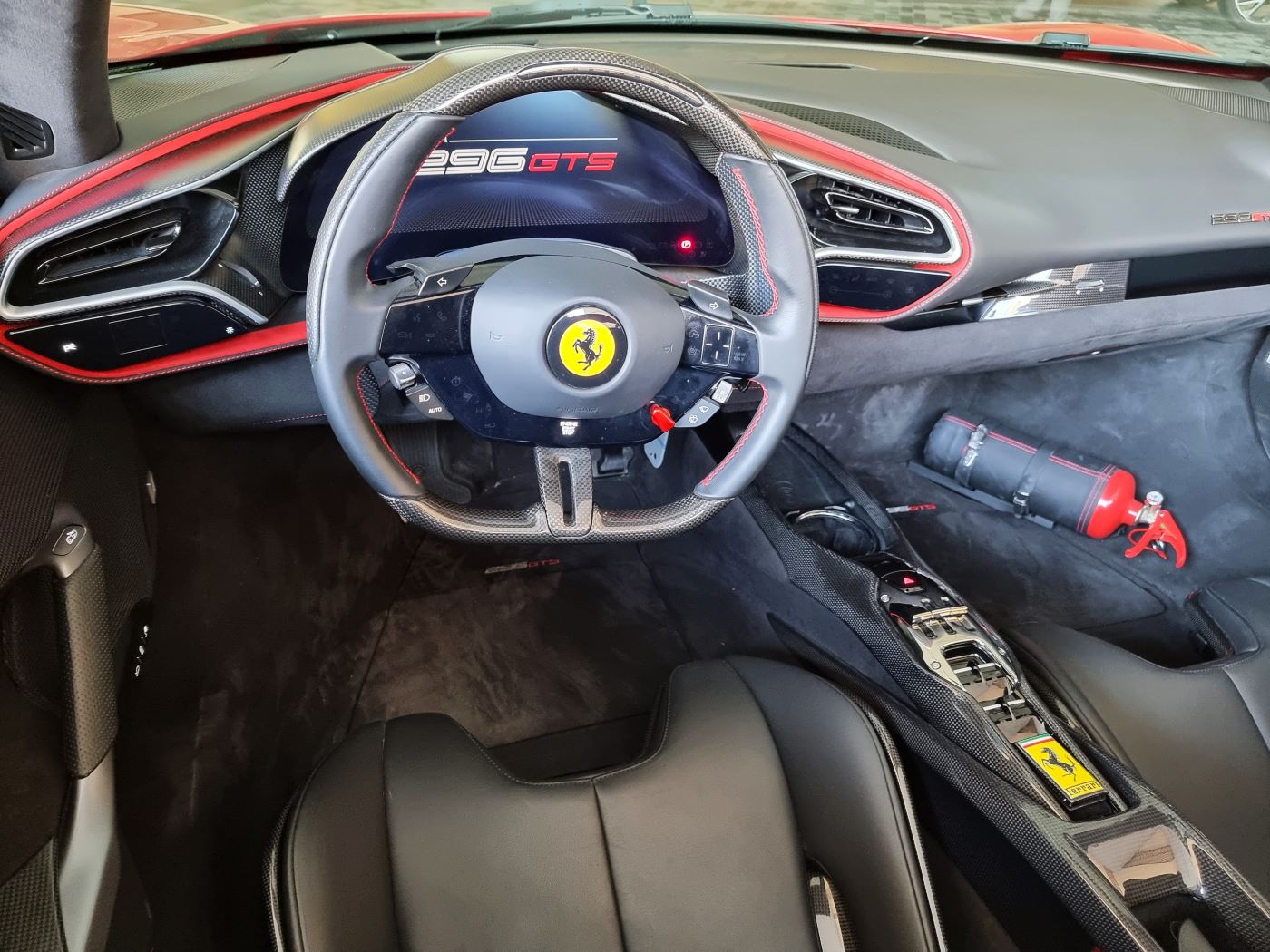 Inside the cabin, the 296 GTS continues Ferrari’s shift toward a digital-first cockpit, surrounding the driver with a fully digital instrument display, touch-sensitive controls and high-quality materials ranging from leather to carbon fiber.