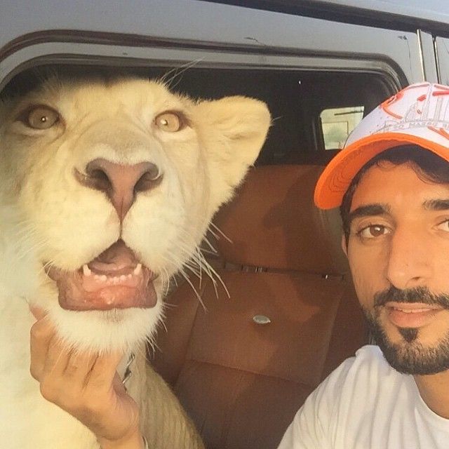 ولي عهد دبي يأخذ لبؤته "فروستي" بجولة في سيارته