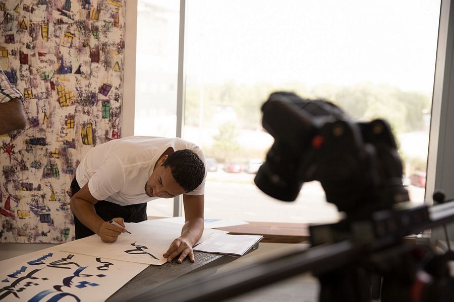 وبالنسبة لي، فأنا أركز على جمالية الأحرف، ولا أضيف الكثير من الألوان أو العناصر الخلفية التي قد تشتت انتباه المشاهد، لكي أتيح لكل حرف أن ينساب بسلاسة ويعبّر عن نفسه".