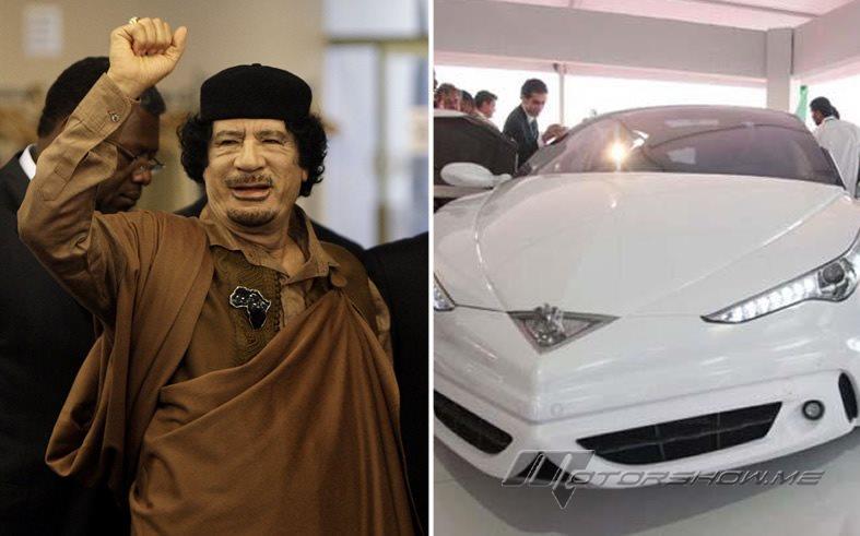 وكأنه سار على خطى ونهج أدولف هتلر - الذي قام بتصميم سيارة "بيتل" - فقام أيضاً بتصميم وصنع سيارة وذلك عام 2009، أطلق عليها أسم "صاروخ الجماهيرية"، تملك خمس مقاعد بمحرك V6، وتشبه لحد كبير شكل الصاروخ، تصميمها قريب من تصميم السيارة هوندا سيفك.
