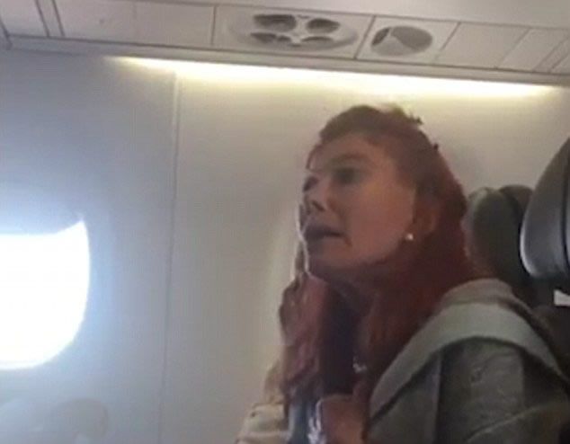 يظهر الفيديو لحظة طرد امرأة من طائرة United Express وهي تقوم بالصراخ وشتم الشرطة بعد أن رفضت وضع كلبها في الناقل المخصص للحيوانات الأليفة.