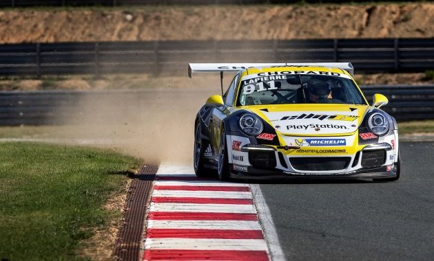 يظهر الفيديو حادث غريب بين السائقين جول غونون وجوفري دي ناردو الذين اصطدما ببعضهما عند منعطف ضيق على حلبة سباقات كأس بورش كاريرا في فرنسا من الجهة اليمنى، حيث دارت احدى السيارات حوالي 180 درجة والثانية سارت مباشرة باتجاه سقف السيارة الذي تأذى قليلاً جداً.
