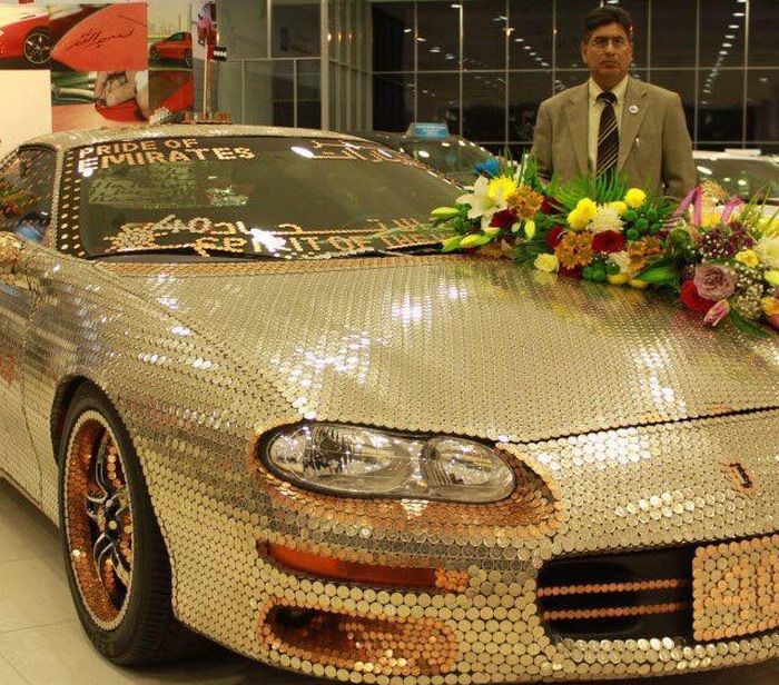 زيين طارق جاويد، باكستاني الجنسية، سيارته وتغطيتها بصورة كاملة بقرابة 33.000 عملة إماراتية بقيمة تبلغ 21.000 درهم إماراتي.