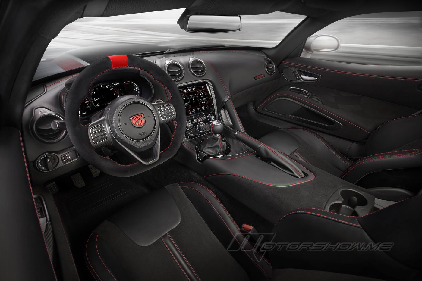 تمتاز قمرة السائق بمقصورة دودج فايبر اي سي ار 2016 بحرفية فائقة، وتشتمل على خامات عالية الجودة وتقنيات تصب في خدمة الأداء العالي. وروعي في جميع الأسطح الرئيسية أن تكون بخياطات قوية ، مع حشوات إضافية لتحقيق مزيد من الراحة.