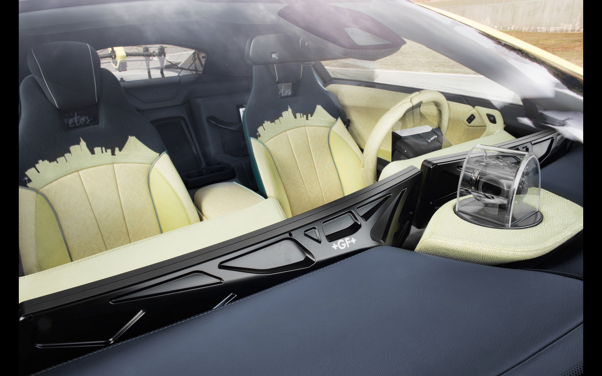 The elegantly and futuristically styled “Σtos” - on the technical basis of the BMW i8 - is a sustainable but also a fast racer. The deep black and shiny 20-inch Borbet GTX aluminum rims leave no doubt about that. They give the body an imposing visual width and provide perfect handling on the track. To make the athlete as light as possible, Corning manufactures the glass roof and the “drone pad” in the rear from especially strong, lightweight and thin Gorilla glass, the same kind used in smartphones. The aluminum front structure and the carbon fiber passenger cell are joined together with ultra-high-modulus adhesive from Sika.