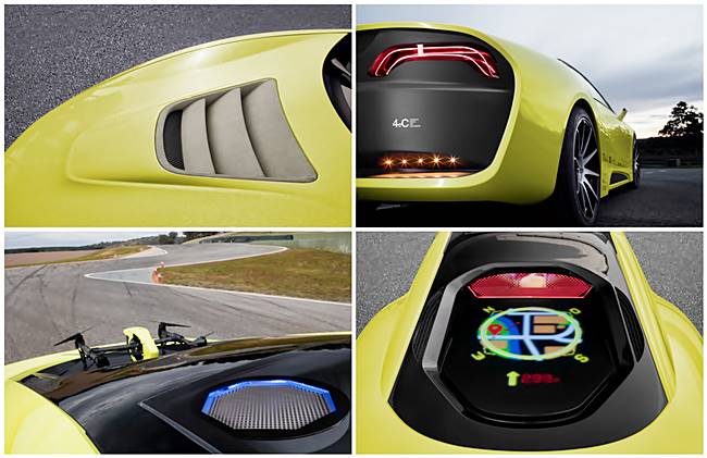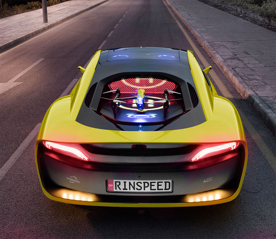 As always, the Helvetian think tank, which following an old tradition once again commissioned the Swiss colleagues of 4erC to design the twenty-second concept car and Esoro to handle the technical realization, explores the existing digital possibilities - and demonstrates new ones. The “Σtos” is fitted with an on-board DJI drone complete with landing platform in the rear. An armada of 12,000 individually controlled LEDs can transform this platform into an electronic message board or a visual dancefloor. This technical marvel was designed by Swiss specialist Weidplas, which is also behind the rear window that has been converted into a third brake light and the brilliant seat inlays. The drone itself is capable of providing some very useful services. For example, it can quickly pick up a bouquet of flowers for the significant other ordered on the way home. And the little flyer is a lot of fun when it acts like a UFO, shooting a selfie of the ride in the “Σtos” on your local favorite route and streaming it live to friends. Heads up: that little thing has an extremely high addiction and envy factor!