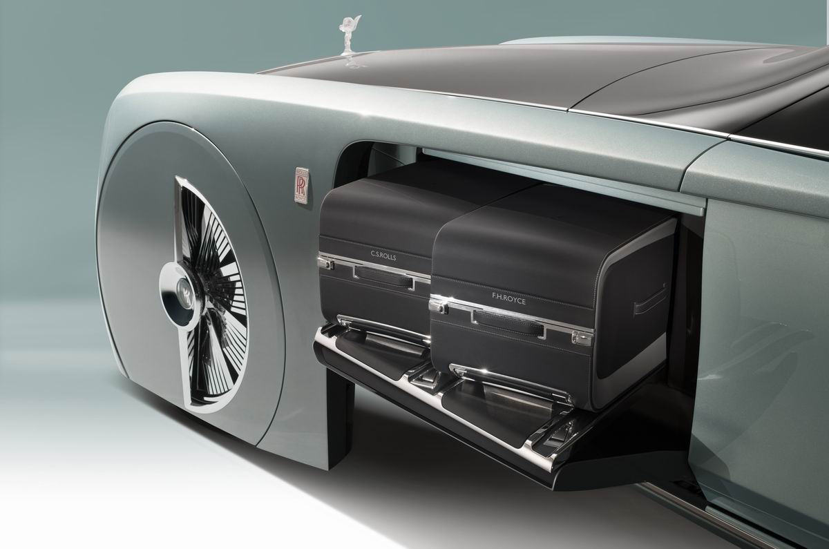 This lightness is achieved through the paring back of this vehicle to the essence of a Rolls-Royce by the Design team, who were freed from their current constraints by the new propulsion and coach-build technologies now available to them. So,for example, where an engine would once have occupied the entire under-bonnet area of the car, a luggage compartment is positioned just aft of the front wheels.