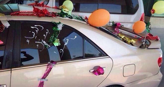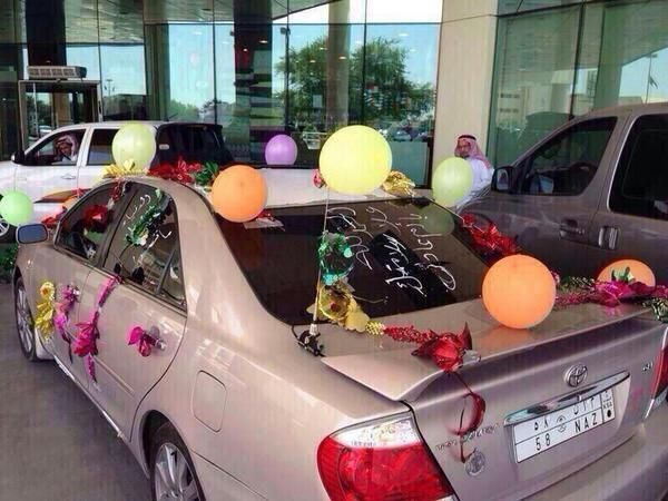 تداول رواد مواقع التواصل الاجتماعي صور قيل انها لشاب سعودي قام بتزييّن سيّارة وقام بكتابة عبارات رائعة عليها وذلك أثناء انتظاره لوالدته أمام المستشفى بعد أن أتم الله شفائها