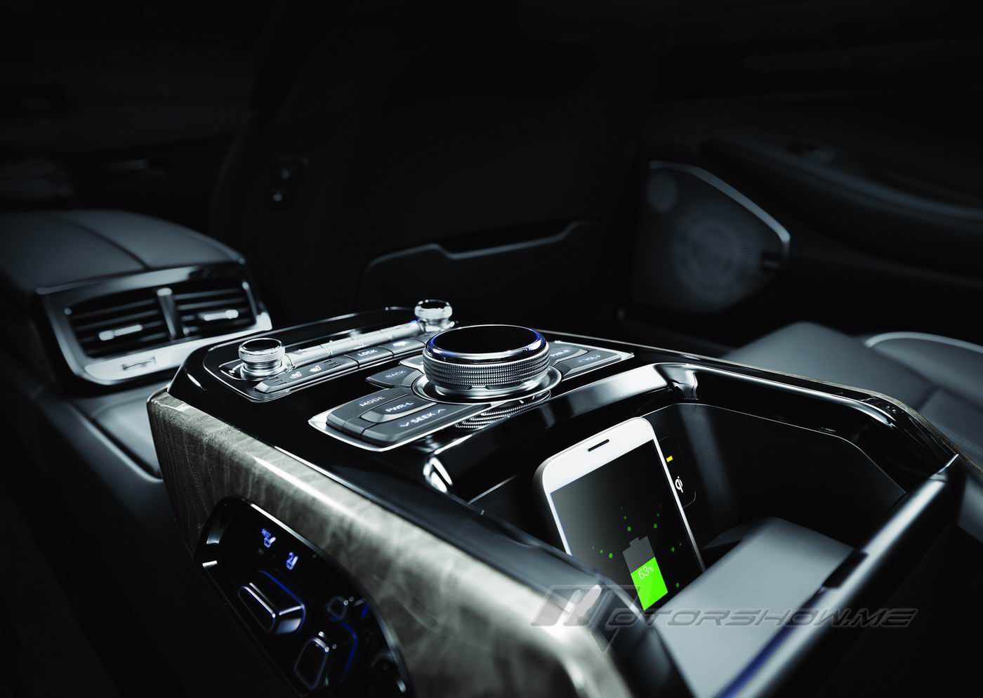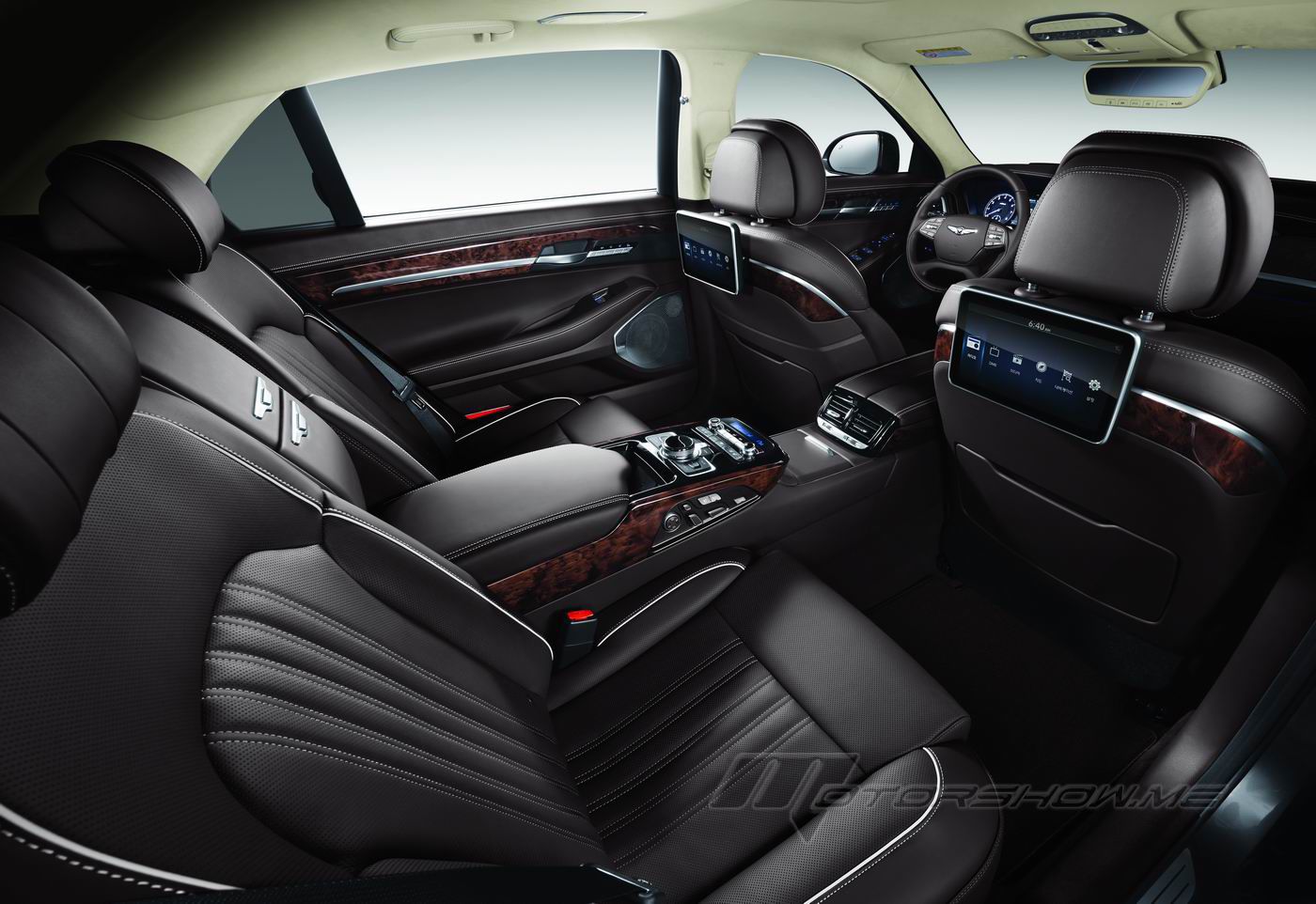 وتحافظ مقصورة G90 على أجواء هادئة بالرغم من الشخصية الرياضية سريعة التجاوب التي تتمتع بها السيارة، التي تأتي بثلاثة خيارات من المحركات تضمّ محركاً بسعة 3.8 لترات وست أسطوانات على شكل V يعمل بالحقن المباشر للبنزين، ومحرّكاً جديداً كلياً بسعة 3.3 لترات وستّ أسطوانات على شكلV مع شاحن تيربو مزدوج، ومحرّكاً قوياً بسعة 5.0 لترات وثماني أسطوانات على شكل Vيعمل بالحقن المباشر للوقود من أجل أعلى درجات القوّة، كما زُودت بناقل حركة أوتوماتيكي ثماني السرعات مع مقبضين للتبديل اليدوي.