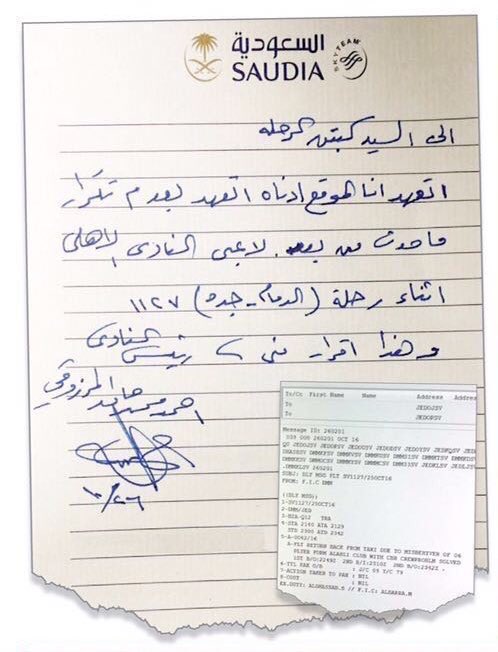 طلبت إحدى مضيفات رحلة الخطوط الجوية رقم 1127 من لاعبًا أهلاويًّا كان يجلس قريبًا من المقاعد المؤدية إلى أحد مخارج الطائرة بفسح المجال أمامها لعمل الفحص النهائي على أبواب الطائرة L3 -R3 (من نوع 330A إيرباص).