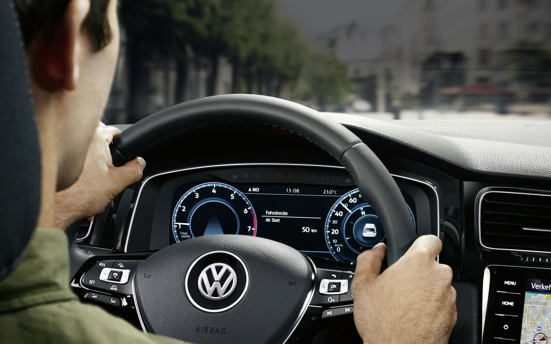 Small gestures can achieve a lot. That's true not only in interpersonal relationships, but also when it comes to gesture control in your new Golf. This function makes it even more convenient to operate the optional Discover Pro navigation system. It enables you to easily move around in the main menu and various submenus using a right-to-left swipe gesture to switch pages. For example, with just a single hand movement, you can move from radio station to radio station, song to song, or photo to photo. For each gesture, you use a colour code on the user interface to see where gesture control works and where it doesn't – after all, the traditional control options are of course also available for use at any time.