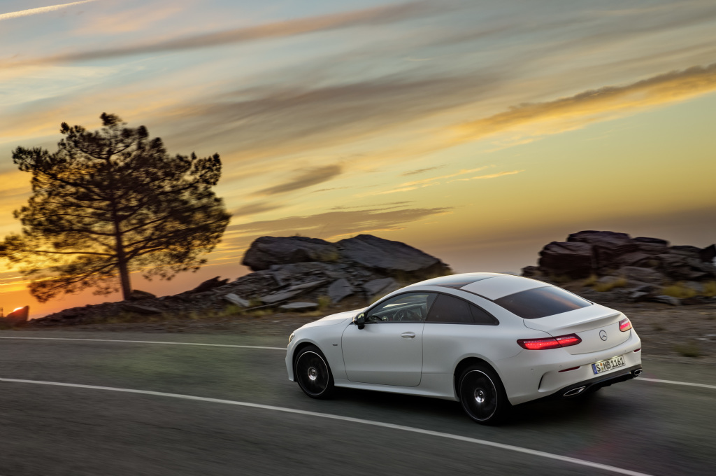 With its expressive coupé-esque proportions, clear and sensual design and long-distance comfort for four people, the new Mercedes-Benz E-Class Coupé combines the beauty and classic virtues of a grand tourer with state-of-the-art technology. It also offers the groundbreaking intelligence of the E-Class family with Apple CarPlay smartphone integration, Widescreen Cockpit and the latest driver assistance systems with the option of, among other things, partially automated driving. Powerful engines with low exhaust emissions and comfortable suspensions with selective damping guarantee a sporty and agile driving experience.