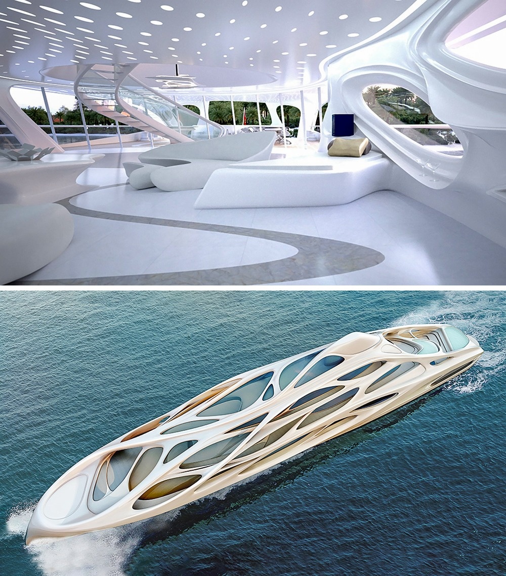 "جاز" يخت جميل، هو مثل حيوان بحري سريع ورشيق، من تصميم زها حديد.