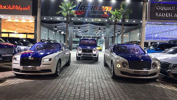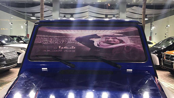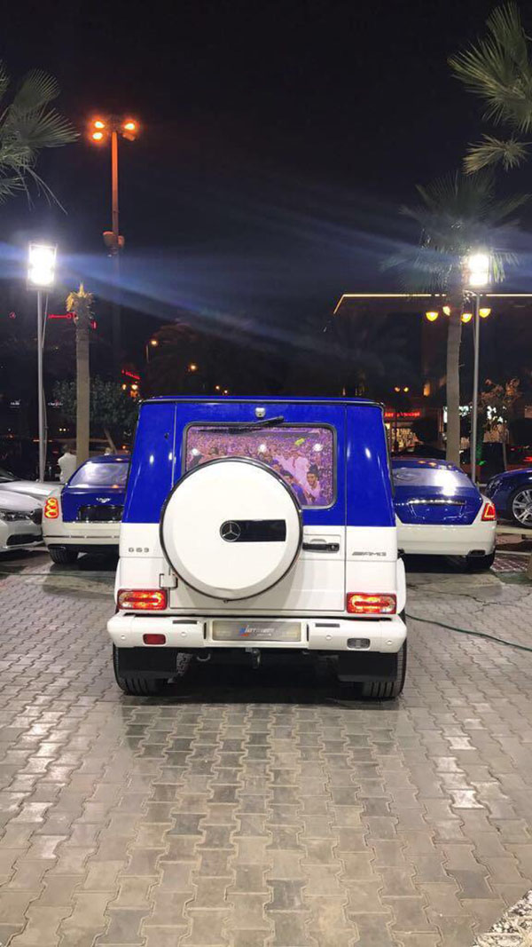 زيّنت سيارات باللونين الابيض والازرق وشعار الهلال وهذا بمناسبة تتويجه ببطولة الدوري السعودي.